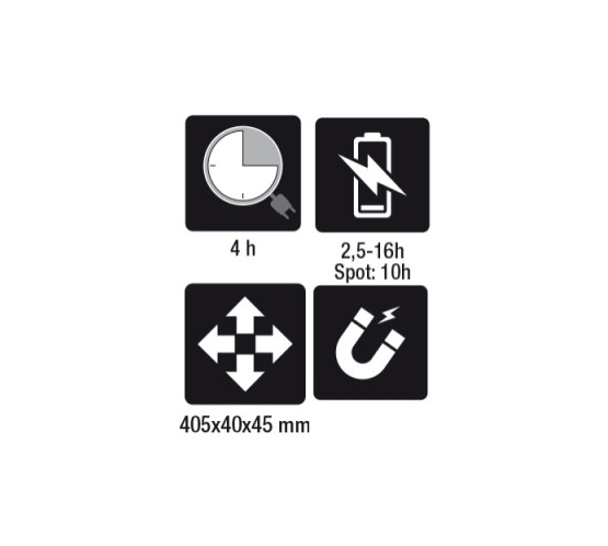 • Base magnetica (con magnete al neodimio) orientabile a 90°