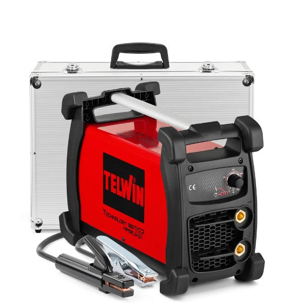 Saldatrice inverter ad elettrodo MMA e TIG in corrente continua (DC) con innesco a striscio, 160A, dalla struttura robusta e resistente agli urti. Completa di accessori per la saldatura e valigetta in alluminio.