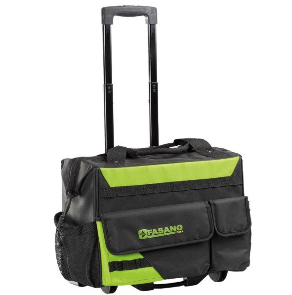 Tessuto tecnico ad elevata resistenza, manico telescopico e 2 ruote resistenti. Struttura rigida con ampio scomparto interno. Tasche interne ed esterne per un'ottimale organizzazione dello spazio. Due tasche esterne frontali chiuse